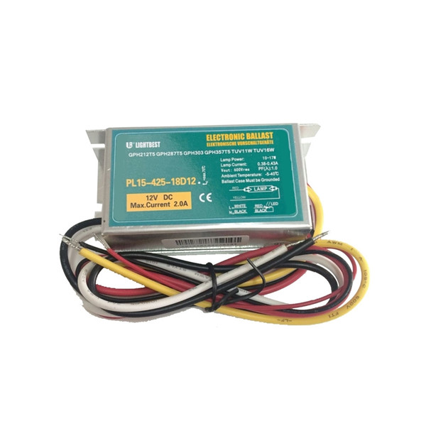 | PL15-425-18D12 | 2.0 أمبير @ 12 فولت | 14.3-24.3 | 85*43*27 | 0.35-0.42 | 10-18 | GPH212T5 GPH287T5 GPH303T5 GPH357T5 TUV11W TUV16 |