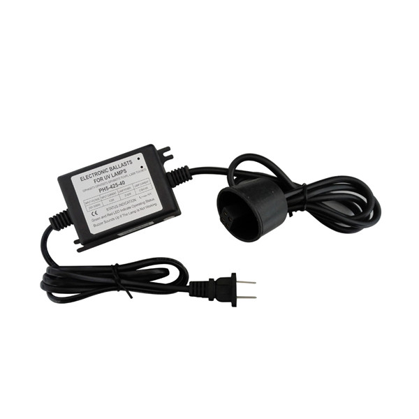 | PH5-425-40U | 0.20 أمبير عند 240 فولت 0.44 أمبير عند 110 فولت | 45 | 105*60*30 | 0.39-0.43 | 21-41 | GPH212T5، GPH287T5، GPH303T5، GPH357T5، GPH436T5، GPH843T5، TUV11W، TUV16W، TUV36T5، GPL36W |